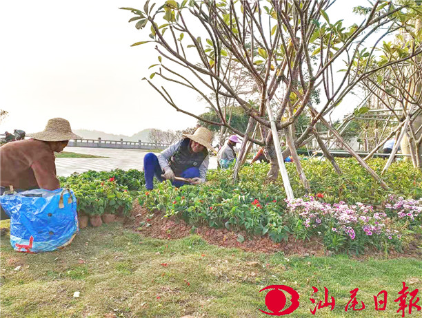 1月14日早上7時(shí),園林工人在市區(qū)海濱大道種花。記者在現(xiàn)場(chǎng)看到,工人一邊種花,一邊清除雜草垃圾,美化環(huán)境。廣大市民為園林工人的辛勤付出點(diǎn)贊。