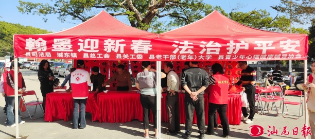 每近新春寫春聯(lián)是海陸豐的年味,也是風(fēng)俗之一。近日,海豐縣司法局等單位組織一批書法家送春聯(lián)到海豐縣城東鎮(zhèn)赤山村,這是對(duì)風(fēng)俗的傳承。 沈綠洋 攝