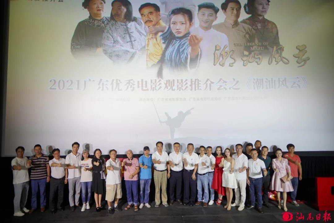 鄭鐘海(右十)在優(yōu)秀電影推介會上與《潮汕風(fēng)云》主創(chuàng)人員合影。