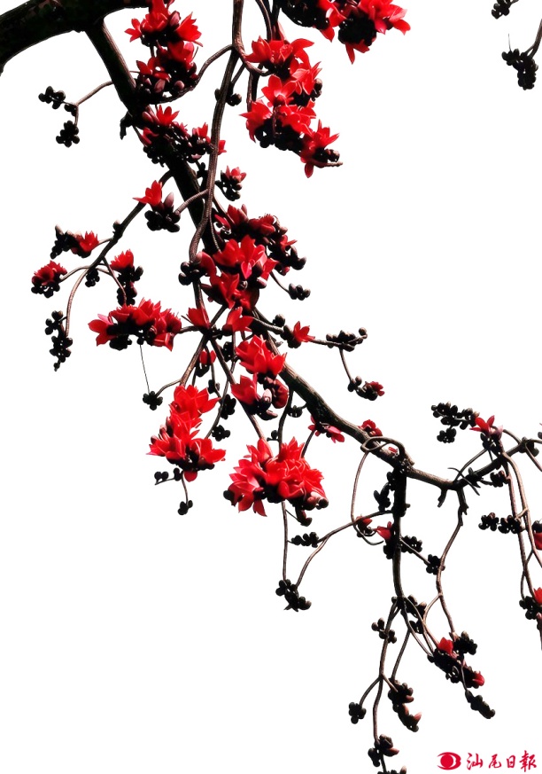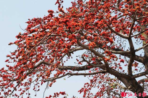 木棉花與紅色地標(biāo)共繪春日盛景。