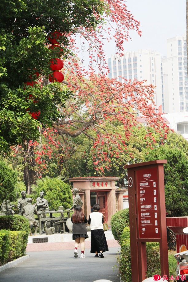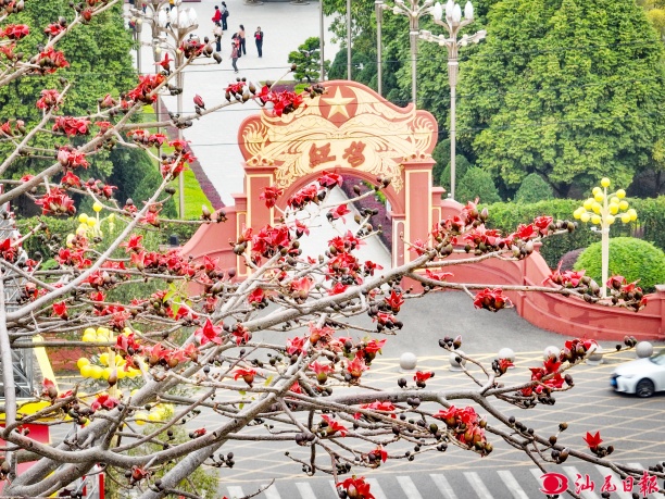 在紅宮紅場(chǎng),盛開的木棉花與雕塑相映,讓紅色記憶在春日里煥發(fā)生機(jī)。