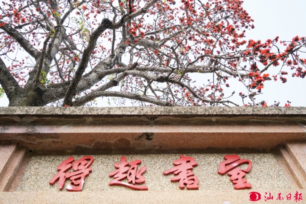 彭湃烈士故居周邊,挺立著數(shù)株木棉樹。歲歲年年,木棉花如期怒放,始終堅(jiān)守著自己的生長(zhǎng)軌跡。特別是“得趣書室”門口那棵70多年的木棉樹,更是遒勁有力,枝干如鐵鑄銅鍛般向晴空舒展,褪去冗葉的枝椏,托舉著滿樹熾烈的英雄花,像一把把燃燒的火炬,映照著書室的白墻,也映著彭湃等革命先輩當(dāng)年在這里點(diǎn)燃的農(nóng)民運(yùn)動(dòng)星火。