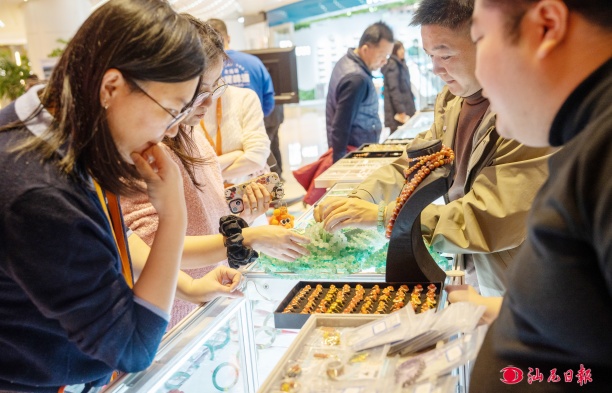 展區(qū)內(nèi),來自汕尾的優(yōu)質(zhì)海產(chǎn)品、精致珠寶首飾、特色農(nóng)產(chǎn)品及文旅創(chuàng)意產(chǎn)品集中亮相,每一件都承載著汕尾的自然饋贈(zèng)與匠人之心。北京市民及游客穿梭于各展位間,或細(xì)細(xì)品味海產(chǎn)品干貨的鮮香,或欣賞珠寶的璀璨工藝,或購買富有特色的鮮果及飲料,對(duì)“汕尾味道”與“汕尾制造”交口稱贊。