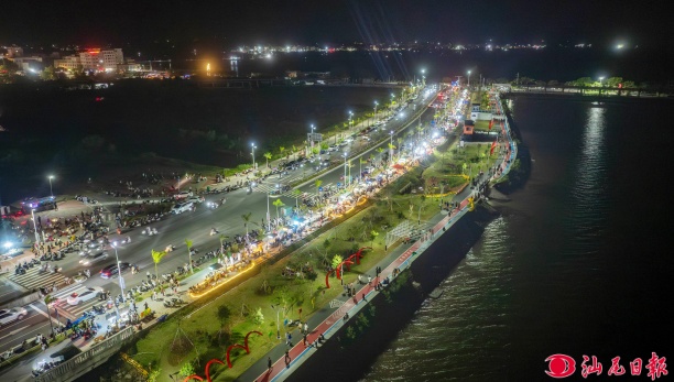 瀛江碧道上的夜市人流如織。 汕尾日報記者 陳茂辛 攝
