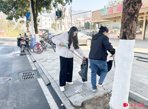 河田社區(qū)組織工作人員清潔街道環(huán)境衛(wèi)生。