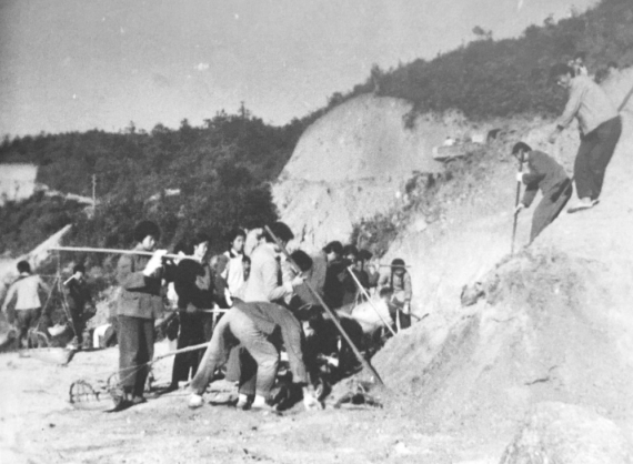 在南告水庫大壩的工地上,留下了潮汕知青們辛勤的汗水。每天清晨,他們迎著第一縷陽光出工去,男生們沖鋒在前,女生們也不甘落后。剛到工地不久,知青們經(jīng)常在大壩工區(qū)勞動,鐵釬、鋤頭、畚箕、手推車等,是他們當(dāng)時常用的勞動工具。在日復(fù)一日你追我趕的快節(jié)奏勞動中,他們的雙手磨出了血泡、老繭。后來,很多知青被安排到大壩工區(qū)的設(shè)計室、測量隊、鉆探隊和廠房工區(qū)工作,為大壩和廠房建設(shè)貢獻力量。