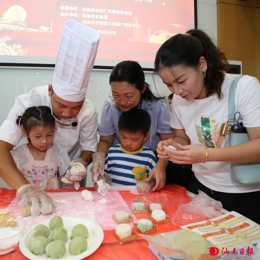 親子制作月餅活動(dòng)現(xiàn)場。