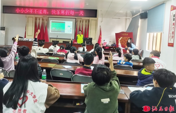 圖為孩子們舉手搶答禁毒知識(shí)。